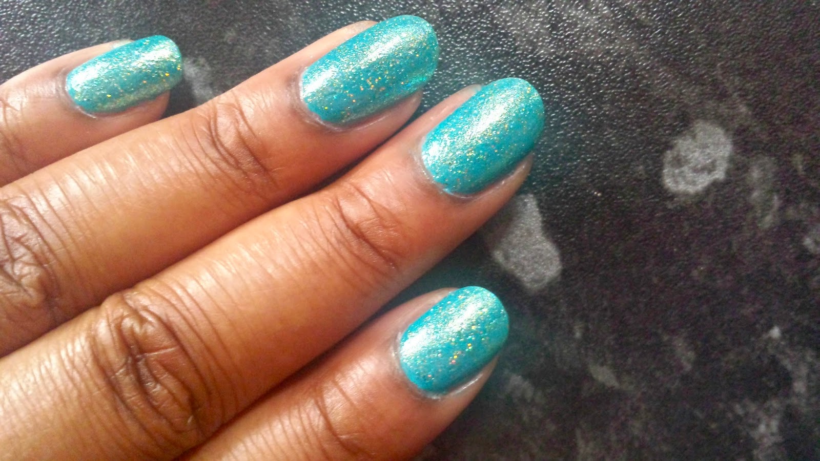 I used 1 coat of Barry M Guava and 2 coats of Barry M Catwalk Queen for this look. I have written about my love for the Barry M Guava nail polish here, but adding Catwalk Queen on top was just HEAVENLY! Catwalk Queen is a green/turquoise glitter mixture with hints of gold flecks running through it. So so gorgeous. I love blue nails so Catwalk Queen is the perfect glitter accompaniment for blue and green polishes.